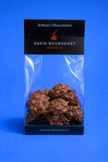 Nos rochers aux amandes en chocolat noir sont préparés artisanalement dans notre laboratoire à Genève.